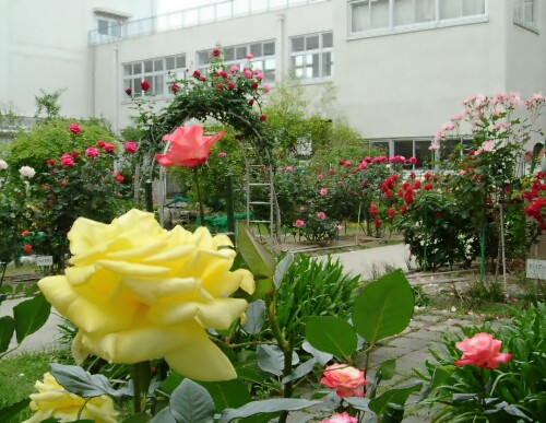 津東高校の中庭に素敵なバラ園があるのをご存じでしょうか。 「春のばら展三重県ばら会会長賞」等、毎年数々の賞を受賞している自慢のばらです。