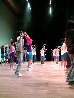 さて、台風一過の暑い日差しの中、校内では、昨日の分を取り戻すように急ピッチで準備が始まりました。また、今日は、オープニング・ステージのリハーサルの日。舞台に立ってみて、いよいよ明日への実感がわいて来たことでしょう。