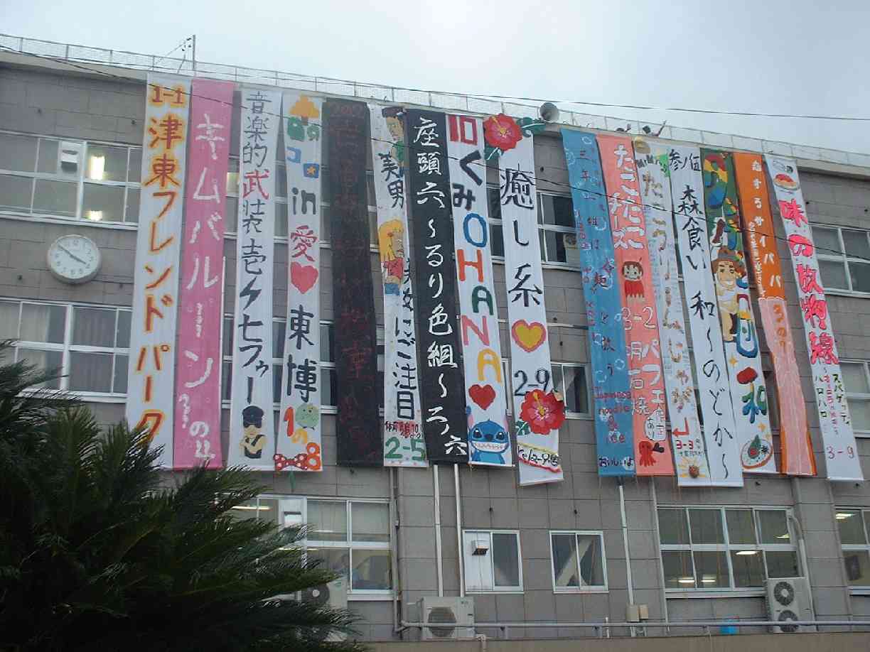 正門には花々が飾られ、校舎の壁には垂れ幕が出揃い、様々なテントが立ち並びました。教室の中でも色とりどりの飾りつけや展示が完成し始め、廊下には趣向を凝らしたポスターが貼られて、賑やかになってきました。