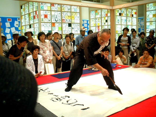9月12日 愛・地球博 モリゾー・キッコロメッセで開催された「世界のsho 日本の書」で、本校の芸術科菅生教諭が揮毫の様子を披露しました。