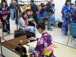 放課後の時間帯には、来校者全員と図書委員がいっしょに折り紙を折ったり、茶道部員による献茶が行われたりして、両校関係者は時間の経つのを忘れて交歓交流を深めました。