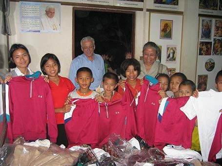 贈られたのは、長袖の体操服やハーフパンツ、Tシャツなど146点 で、 タイの ○山岳少数民族職業訓練センター(チェンライ県メーサイ郡) ホーリー・ファミリー・カトリック・センター ○山岳少数民族の幼稚園、小学校(チェンライ県ファーン郡メーパッパイ) で再利用されているようです(写真)。