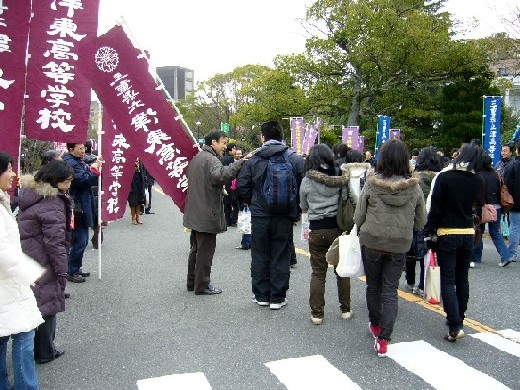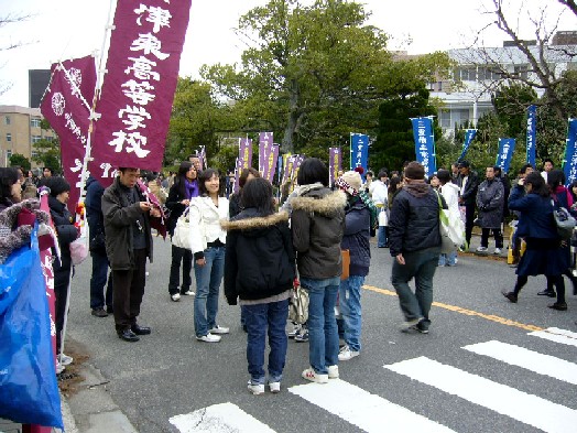 路指導部の教員も早朝からでかけ、受験生へ声援を送りました。